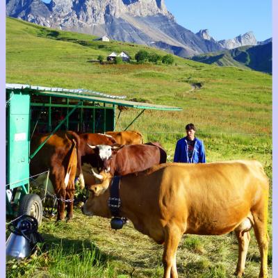 Une expérience culturelle inoubliable, déguster le lait chaud et le Beaufort en pleine montagne, à 2000 m d'altitude au pied des majestueuses Aiguilles d'Arves au milieu des vaches.